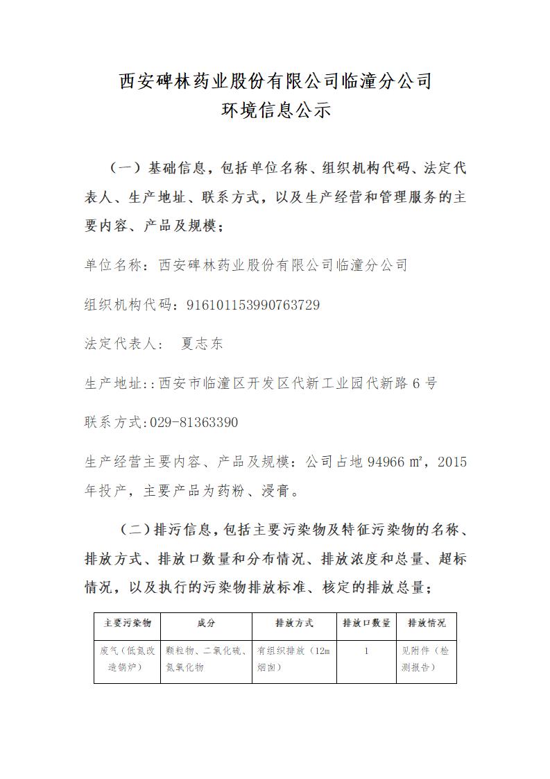 西安碑林药业股份有限公司临潼分公司 环境信息����� �������Ƴ������������ �������Ƴ������������ �������Ƴ������������ �������Ƴ�������公示